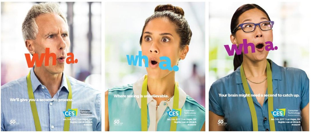 What do you do when you see a cool new piece of technology? Your eyes light up and you say, “whoa!” For CES’s 50th Anniversary show in Vegas, we were asked to develop a new campaign for the massive show. I came up with this idea of focusing on the human experience, instead of the technology. It’s an unbelievably simple idea, but it resonated.